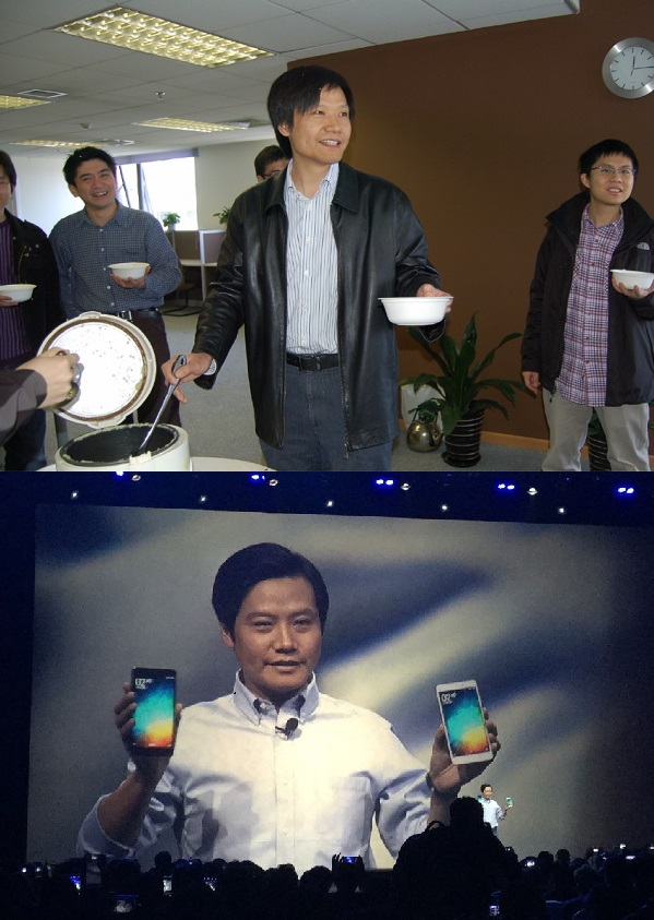 小米总裁林斌发了五年前雷军喝小米粥的高清无码大图,当时的气质和如今梳着大背头的450亿美元先生,气质真是云泥之别,你们感受一下。