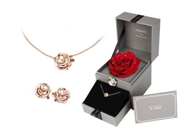 从创立公司开始,高达1314元客单价的roseonly抢的就不是均价在100多元大众鲜花店的生意,而是希望做Tiffany的银制品、施华洛世奇水晶等国际大牌爱情信物礼品的生意。roseonly的定位是高端爱情信物,是总能“让消费者将它与玫瑰和爱情联想在一起”的奢侈品牌。所以当品牌要扩展品类时,第一个想到的就是珠宝和永生花,所有的创意都来源于玫瑰和爱情。